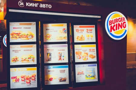 Minsk, Belarus - may 18, 2017: Burger King signboard with names of cities of chain of restaurants Burger King