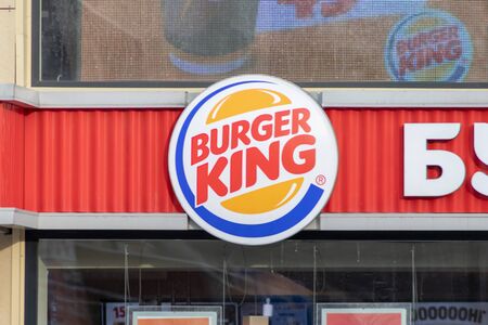Tyumen, Russia-March 12, 2020: Burger King is one of the largest hamburger chains, close-up sign