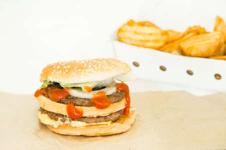 Fast Food delivery service. Tasty Burgers background. Unhealthy meal. Takeaway cheeseburger, street food. Barbecue, grill