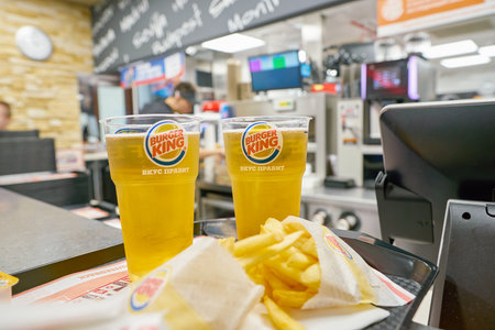 SAINT PETERSBURG - CIRCA OCTOBER, 2017: beer on a tray at Burger King restaurant. Burger King is an American global chain of hamburger fast food restaurants.