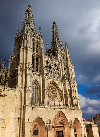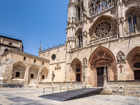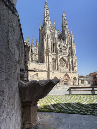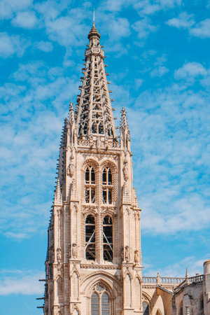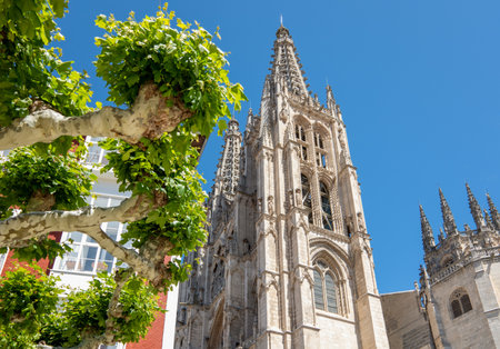 Burgos, Spain - Jun 17, 2023: The Burgos Cathedral in Castilla y Leon, Spain was declared Unesco World Heritage Site. Erected on top a Romanesque temple, following a Norman French Gothic model.
