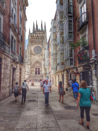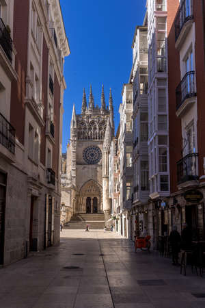 Burgos way to Cathedral on Saint James Way at Castilla Leon of Spain