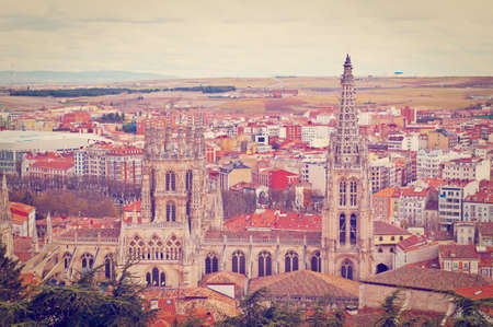 Burgos aerial view skyline with Cathedral in Castilla Leon of Spain
