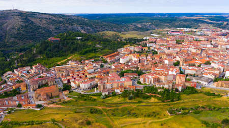 Panoramic view from the drone on the city Soria.