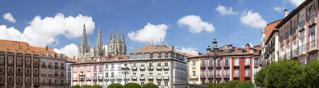 typical square with the gothic cathedral in Burgos, Spain