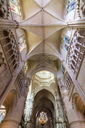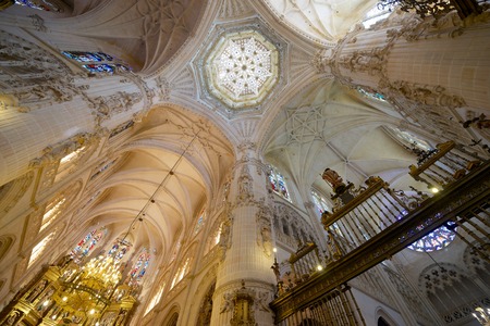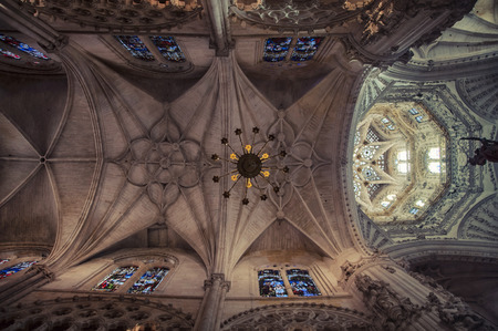 BURGOS, SPAIN - JUNE 8, 2014: Interior of the Gothic cathedral of Burgos, Castile and Leon, Spain, detail of the ceiling