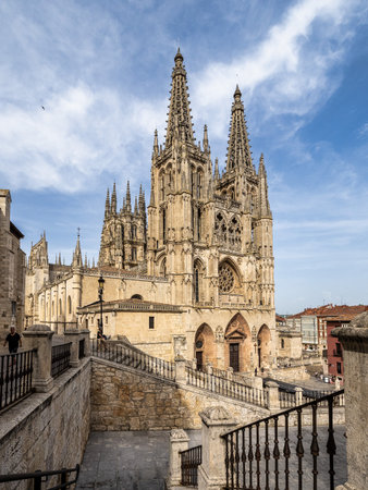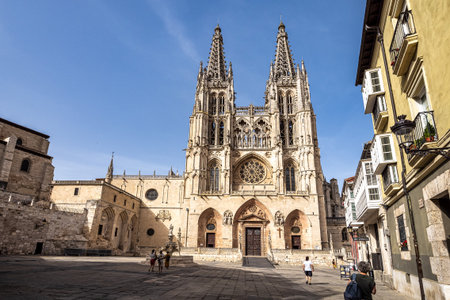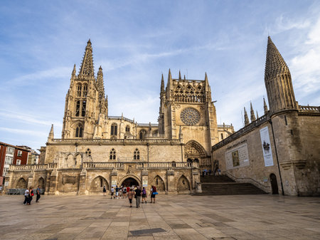 Burgos, Spain - Jun 17, 2023: The Burgos Cathedral in Castilla y Leon, Spain was declared Unesco World Heritage Site. Erected on top a Romanesque temple, following a Norman French Gothic model.