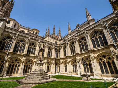 Burgos, Spain - Jun 16, 2023: The Burgos Cathedral in Castilla y Leon, Spain was declared Unesco World Heritage Site. Erected on top a Romanesque temple, following a Norman French Gothic model.