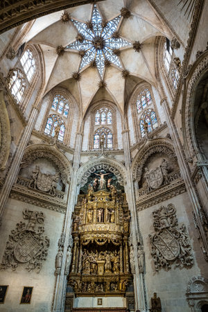 BURGOS, SPAIN - JULY 17, 2012: Interior decoration of Gothic-style Roman Catholic Cathedral. It's famous for its size and architecture style and is declared a UNESCO World Heritage Site