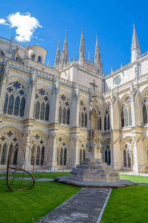 BURGOS, SPAIN - JUNE 8, 2014: Cloister of the Gothic cathedral of Burgos, Castile and Leon, Spain