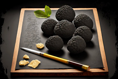Italian black summer truffle, tasty aromatic mushroom, gourmet cuisine, close up