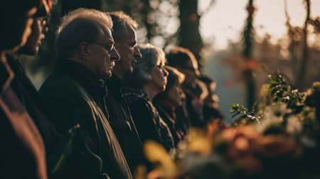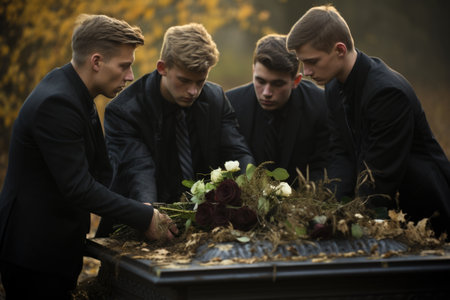 A quiet farewell, a tender moment of the last meeting at the funeral, enveloped in silence and deep emotions of the departed