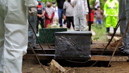 Kolaka, Indonesia-July 14, 2020: The funeral process of a corpse infected with the corona virus with the Covid-19 protocol
