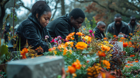 burial ceremony at the cemetery, where loved ones gather to say their final goodbyes