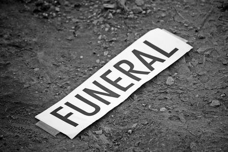 A somber floral tribute featuring white lilies and red roses, arranged outdoors to honor a loved one during a heartfelt memorial gathering.