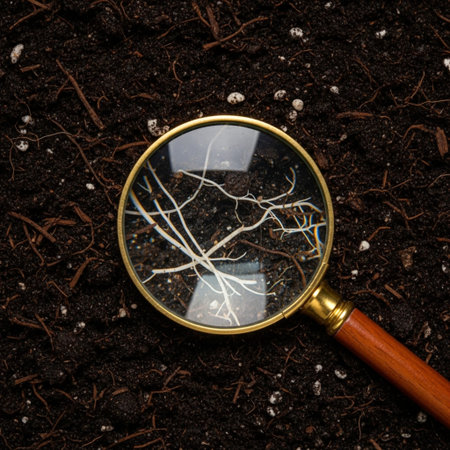 Two hands covered in dirt reach out from the soil, illustrating a deep interaction with nature. Sunlight shines on the scene, highlighting the rich textures of the earth.