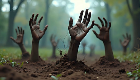 Zombie arm climbs out of the ground
