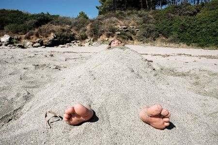 A woman is submerged in a muddy pool, her face partially visible. Concept of discomfort and unease, as the woman is struggling to breathe and is surrounded by the murky water