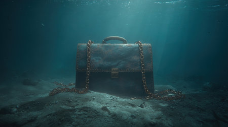 Old leather briefcase on the bottom of a tropical coral reef.