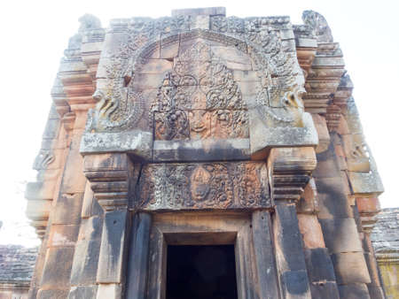 The impressive details of stone carvings at the entrance of Phanom Rung Historical Park.