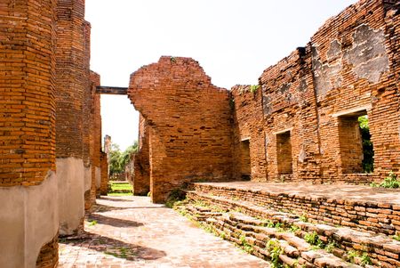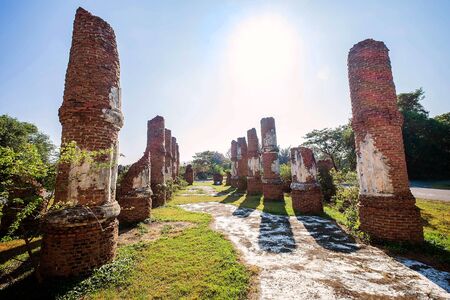 Ayutthaya old city, with brick road and behind the sky, is a tourist attraction.