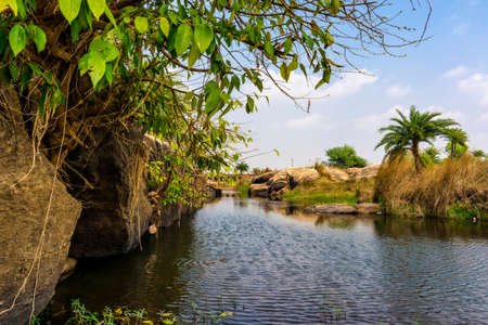 urban Indian river surrounded by stones and rocks