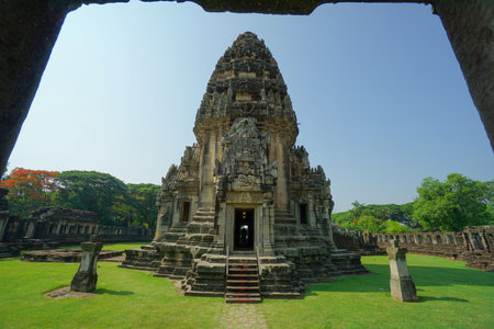 Bangkok, Thailand on 25 July 2023. Marvel at the ancient Khmer temple ruins set against a backdrop of lush greenery and clear sky Great for historical and cultural exploration visuals.