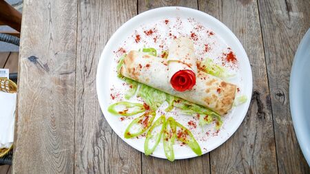 Turkish and Arabic Traditional Ramadan Kebab. Ramadan Kebab is a sandwich which is wrapped in a lavash.