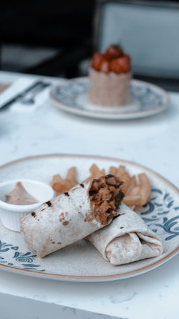 Shawarma Lavash with Chicken and Vegetables Studio Photo