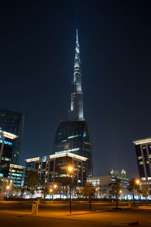 DUBAI, UAE - NOVEMBER 27: Burj Khalifa by night on November 27, 2014 in Dubai, UAE. Burj Khalifa is currently the tallest building in the world, at 829.84 m (2,723 ft).
