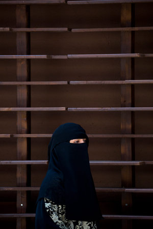 Example picture Islam. Muslim burqa is with obscured.