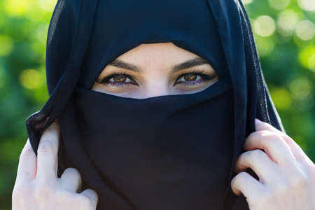 Beautiful Muslim girl wearing burqa closeup