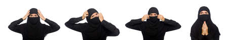 Muslim woman in black dress isolated on white