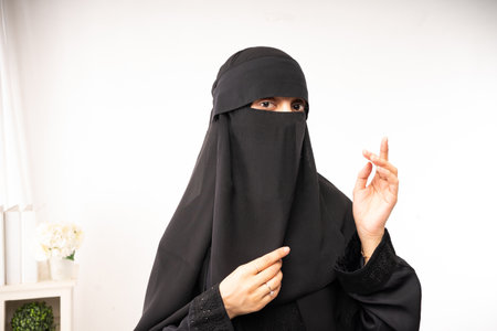 woman wearing hijab black cloth isolated background