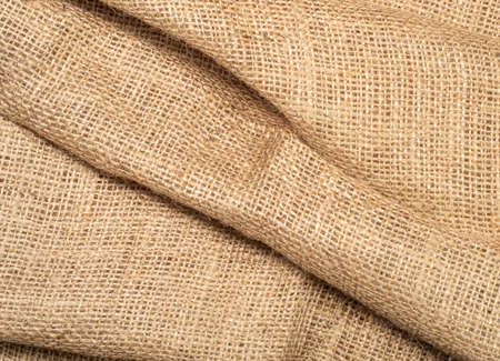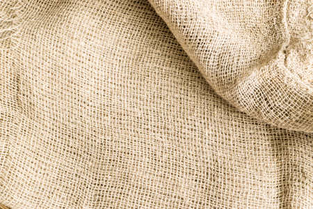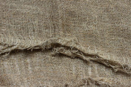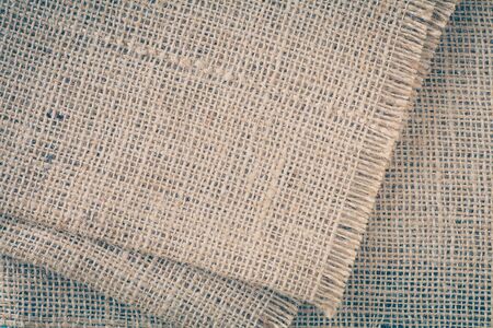 Natural fabric texture, frame and background of burlap. Rough crumpled burlap background. selective focus