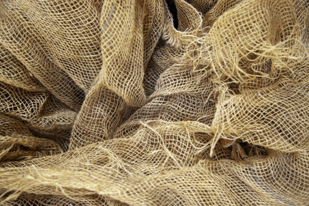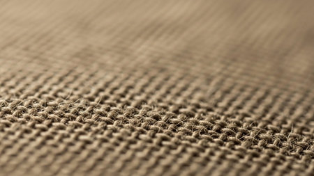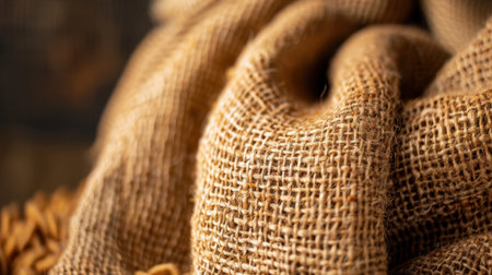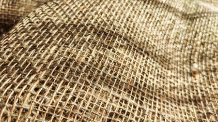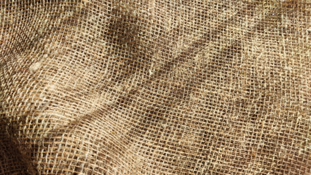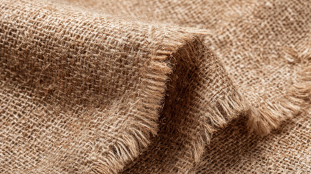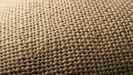 Capture the natural beauty of jute fabric with this detailed close-up showcasing its textured surface and warm earthy tones, ideal for various organic projects.