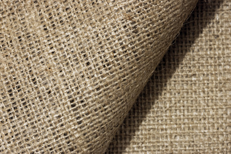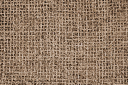 Close up of a textured burlap fabric with natural woven pattern, suitable for backgrounds or craft concept designs