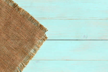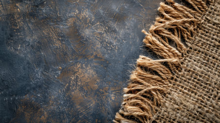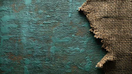 Burlap fabric contrasts beautifully against a textured teal surface, showcasing artistry.