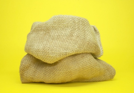 Hemp sack material. Hessian flax rough cloth. Vintage sackcloth pattern. Fibrous beige rustic backdrop. Brown burlap knit texture. Natural fabric bag background