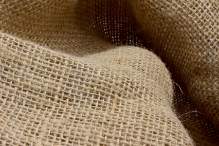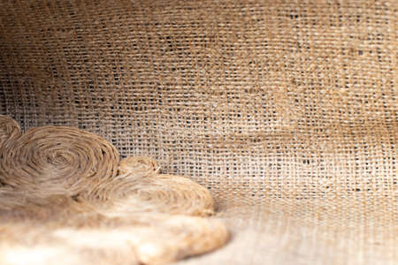 Rural texture of sackcloth. Background of very coarse, rough fabric woven made of flax, jute or hemp. Burlap bag material. design element. Sacking and bagging pattern