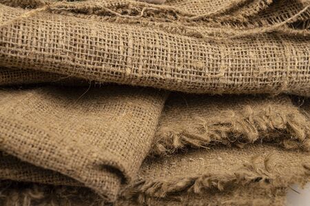 A few pieces of burlap. Fabric with a rough texture for sewing bags. surface texture Close-up