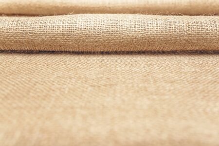 Natural fabric texture, frame and background of burlap. Rough crumpled burlap background. selective focus