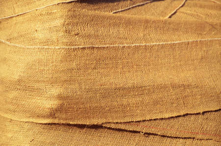 Rural texture of sackcloth. Background of very coarse, rough fabric woven made of flax, jute or hemp. Burlap bag material. design element. Sacking and bagging pattern