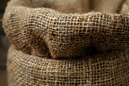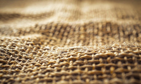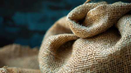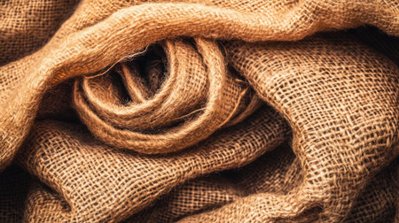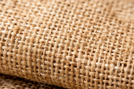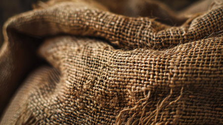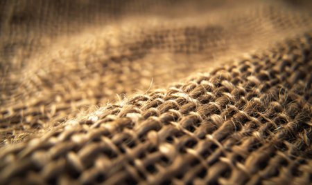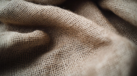 This image captures the intricate texture of burlap fabric, showcasing its natural fibers and rustic charm. The earthy tones create an inviting atmosphere.