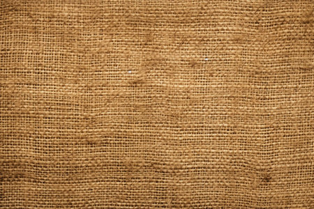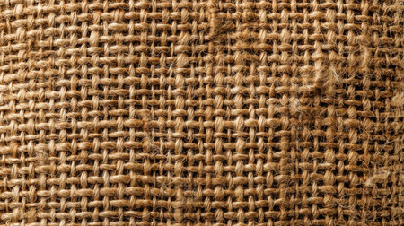 Rough burlap sack texture, coarse woven fibers in earthy brown tones, creating a rustic and natural feel