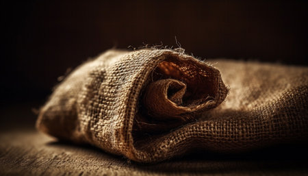 Rustic burlap sack heap, organic food freshness generated by artificial intelligence