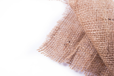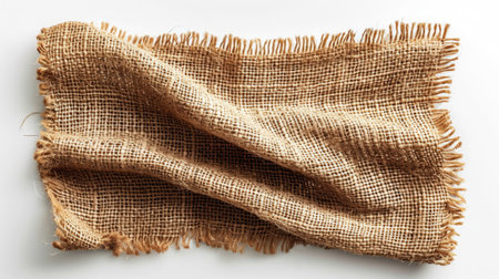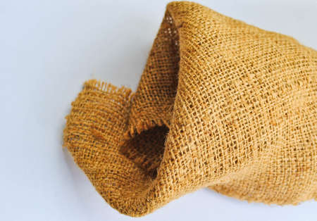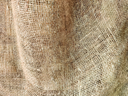 A rustic burlap texture, laid out flat, highlighting the natural, coarse weave and earthy tones against a clean white backdrop.