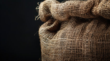 This close-up photograph showcases a textured brown burlap fabric, highlighting the natural fibers and warm tones against a dark background. Ideal for rustic-themed projects.