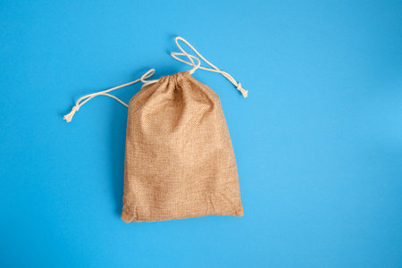 Bag of burlap on a blue background with space for text