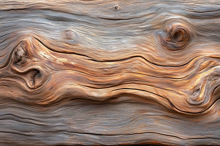 Close-up view of a weathered wood surface showcasing intricate textures and unique natural patterns, perfect for design and nature themes.